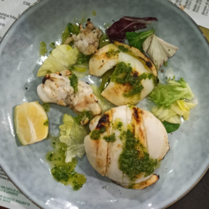 Now, let's dive into the heart of the menu, which features an enticing variety of dishes primarily focused on meats and seafood. Carnivores will rejoice at options like the succulent solomillo de cerdo at €14.00, and the impressive chuleton available in both 500g for €22.00 and a hefty 1kg for €38.00. Each dish is accompanied by generous sides that elevate the overall experience. Those looking for lighter fare can enjoy superb pescados such as the perfectly grilled emperador for €13.00 or the salmon topped with zesty butter and lemon for €17.00.